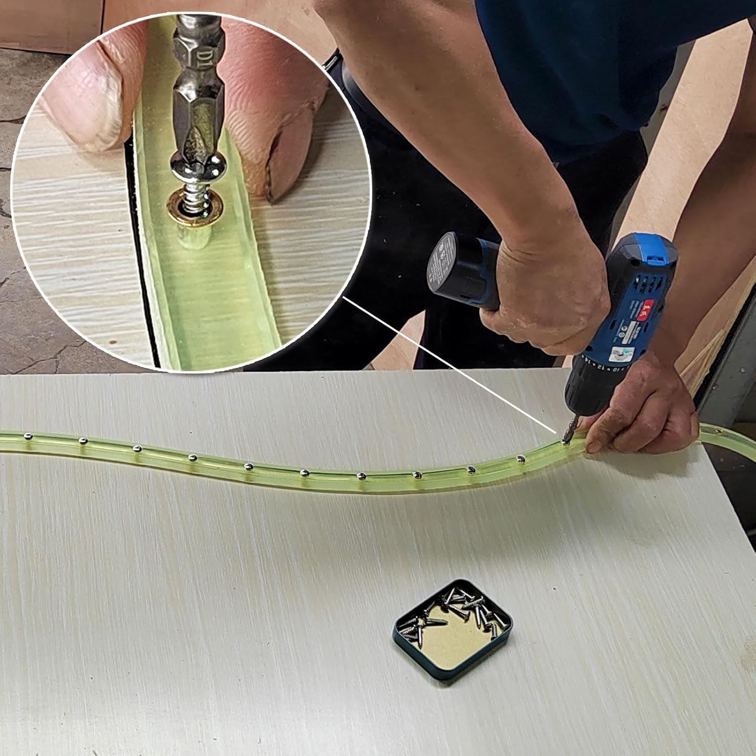 Product Material:The woodworking profiling strip is made of green color polyurethane material. PU material has the characteristics of wear-resisting, good flexibility and strong resilience, and is suitable for use as a wood shaping tool.The brass bushing is embedded in the middle as a screw hole, which is not easy to wear and can be reused.