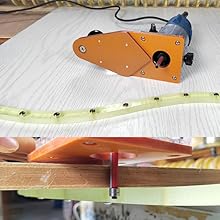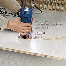 OPERATION CAUTIONS:Recommended for use on a woodworking bench equipped with a router. Can not be directly hand-held router operation,so it will produce milling cutter vibration phenomenon, the edge of the board is damaged. If you must hand operation, you can fix the router on the router steadying plate, so that you can control therouter with both hands, and the stability is better. When cutting, pay attention to feed and withdraw the tool operation in order to discharge the wood chips, which can avoid the rapid heating of the milling cutter.